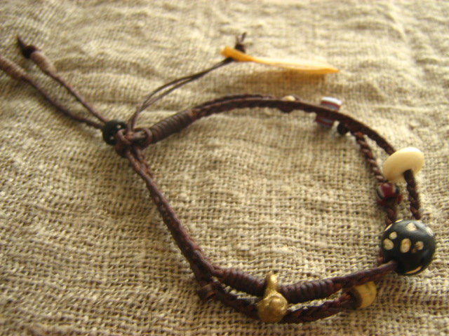 ← → ヴェネチア アンティークビーズの スカンクを中心に 真鍮ビーズ、カンネ、ボーンビーズ で仕上げました 大きさの調節は アンティーク ココナッツビーズです