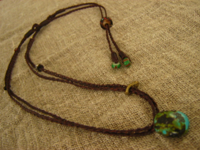 ← → 天然ターコイズをトップにつけ 右上にアンティーク真鍮ビーズをつけました ネックレスのほとんどが 首後のビーズで 長さ調節ができるようになっています 最大胸下あたりからのスタートです こちらの調節部にはヤクボーンを使ってみました 後姿も楽しめます。。